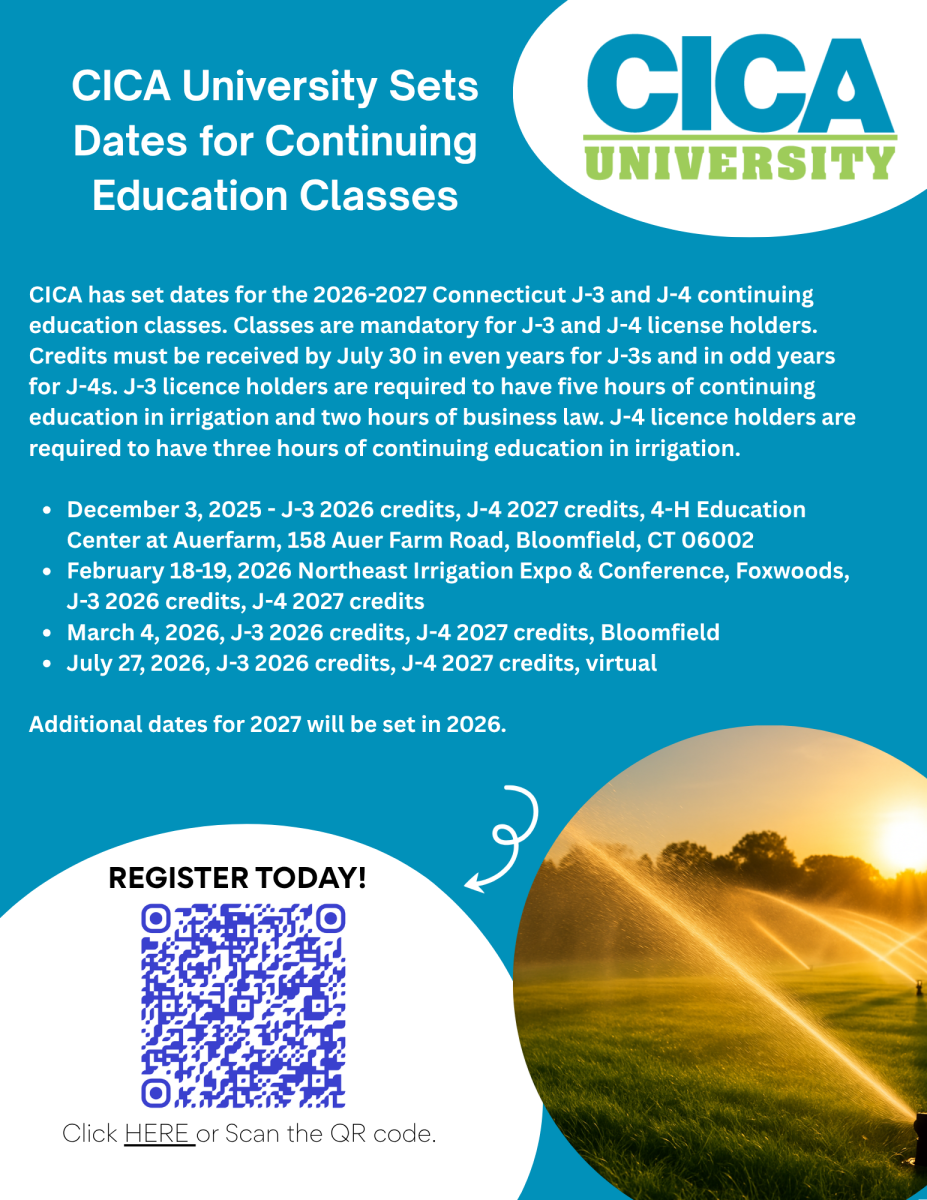 The Connecticut Irrigation Contractors Association is the leading membership organization for irrigation professionals, contractors and suppliers.